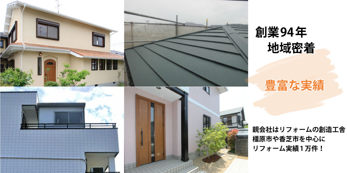 親会社は94年続く住宅リフォーム会社(株式会社創造工舎)。建物全体を考える施工で安心。遮熱塗料より断熱材を使うなど、費用対効果の高い提案も致します。